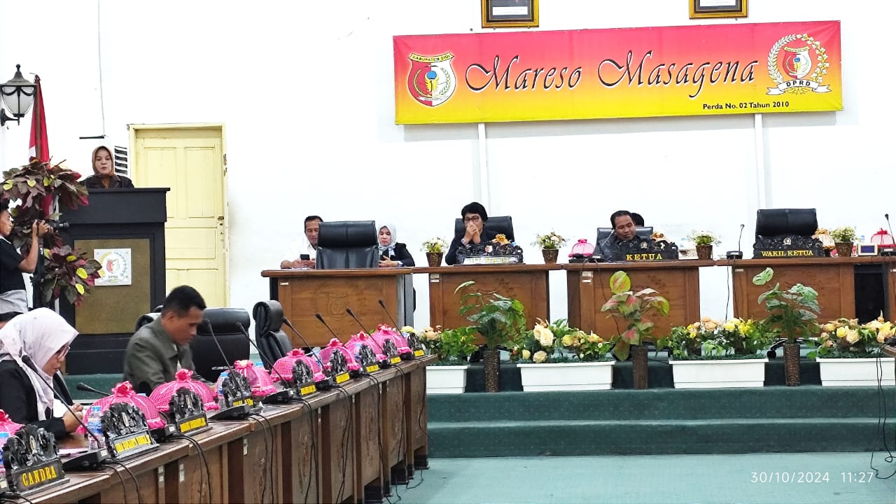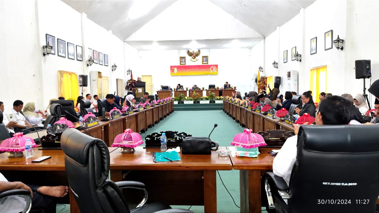 Rapat Paripurna dipimpin langsung Ketua DPRD Sigi Minhar Tjeho, didampingi Wakil Ketua I Ikra Ibrahim, dihadiri, Asisten Bidan Administrasi Umum, Selvy, mewakili Bupati Sigi, berlangsung di ruang rapat utama DPRD Sigi, Rabu (30/10/2024).