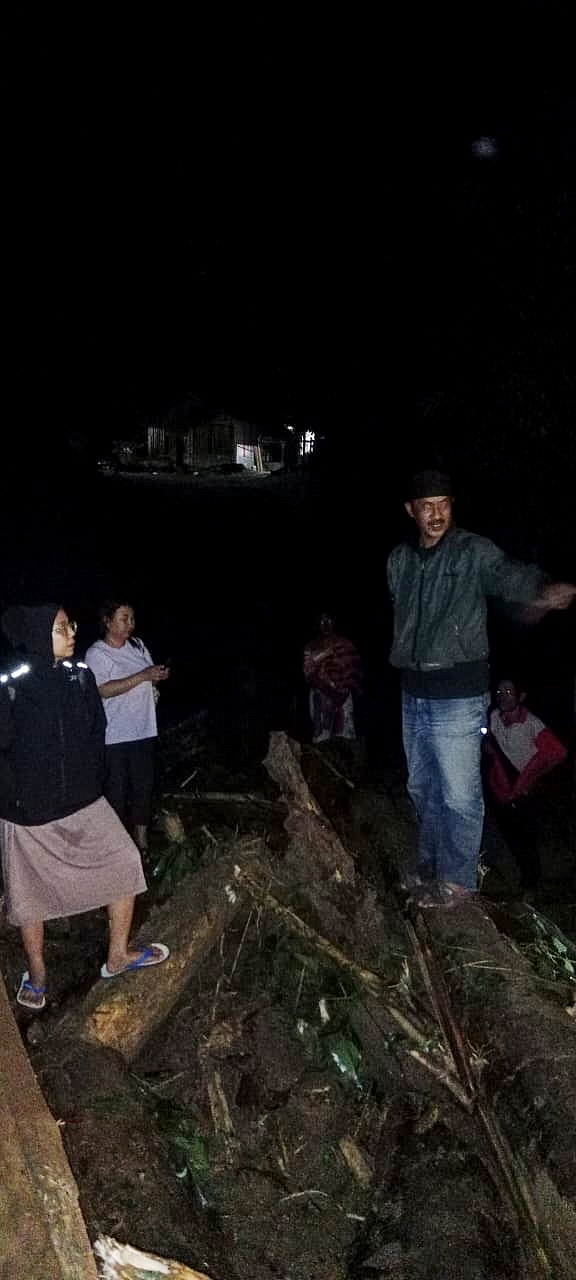 “Malam kejadian kami hanya bisa berada di dusun 3 Namo karena terhalang tumpukan kayu dan kondisi jalan yang belum dapat dilalui akibat beberapa titik longsor,” ungkapnya.