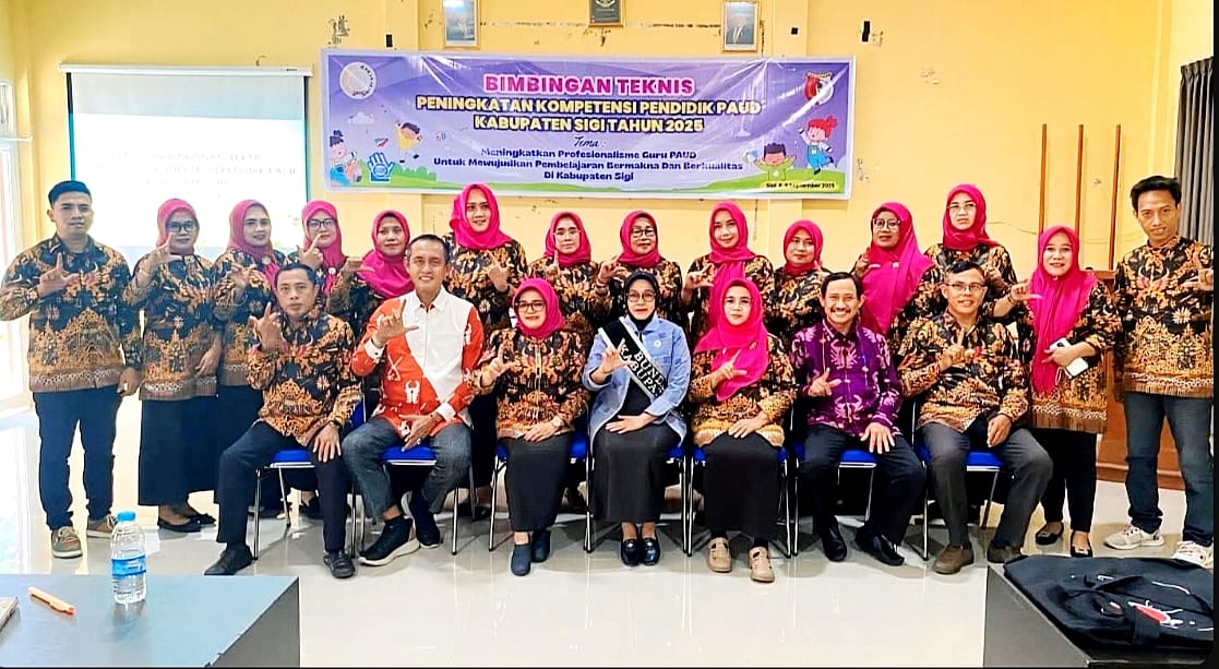 SIGI – Bunda PAUD Kabupaten Sigi, Hj. Siti Halwiah, membuka Bimbingan Teknis (Bimtek) peningkatan kompetensi guru PAUD Kabupaten Sigi Tahun 2025 di Sigi, Jumat (5/9/2025).