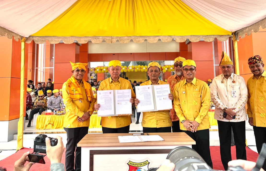 Penandatanganan MoU tersebut disaksikan Gubernur Sulawesi Tengah, Anwar Hafid, dan sejumlah tamu lainnya usai pelaksanaan upacara peringatan HUT Kabupaten Sigi ke-17, yang berlangsung di halaman Kantor Bupati Sigi, Selasa (24/06/25).