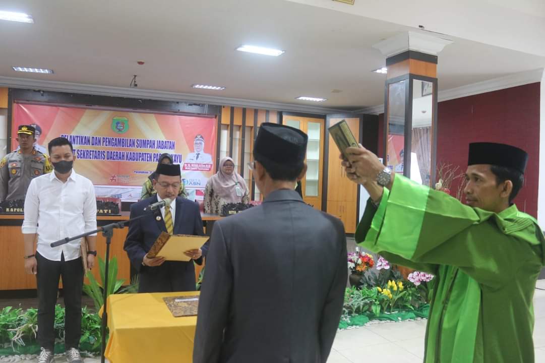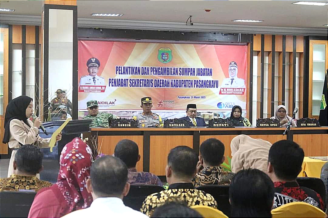 PENASULAWESI.com, – Bupati Pasangkayu Yaumil Ambo Djiwa, melantik DR Kasmuddin, menjadi penjabat Sekretaris Daerah (Sekda) Pasangkayu. Pengambilan sumpah jabatan berlangsung di Ruang Pola Kantor Bupati, Jum’at (31/3/23).