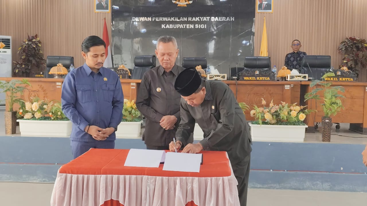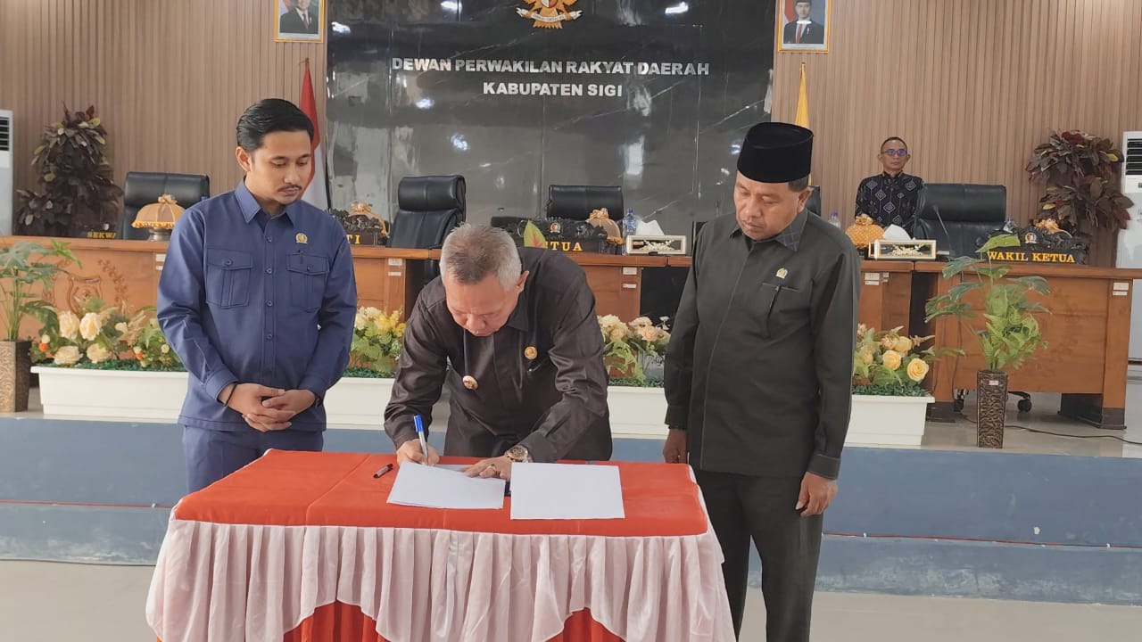 Penandatanganan tersebut dilakukan oleh Bupati Sigi, Mohamad Rizal Intjenae, bersama Pimpinan DPRD Sigi dalam rapat paripurna ke-9 masa sidang ketiga tahun sidang 2024-2025, Jumat 11 Juli 2025.