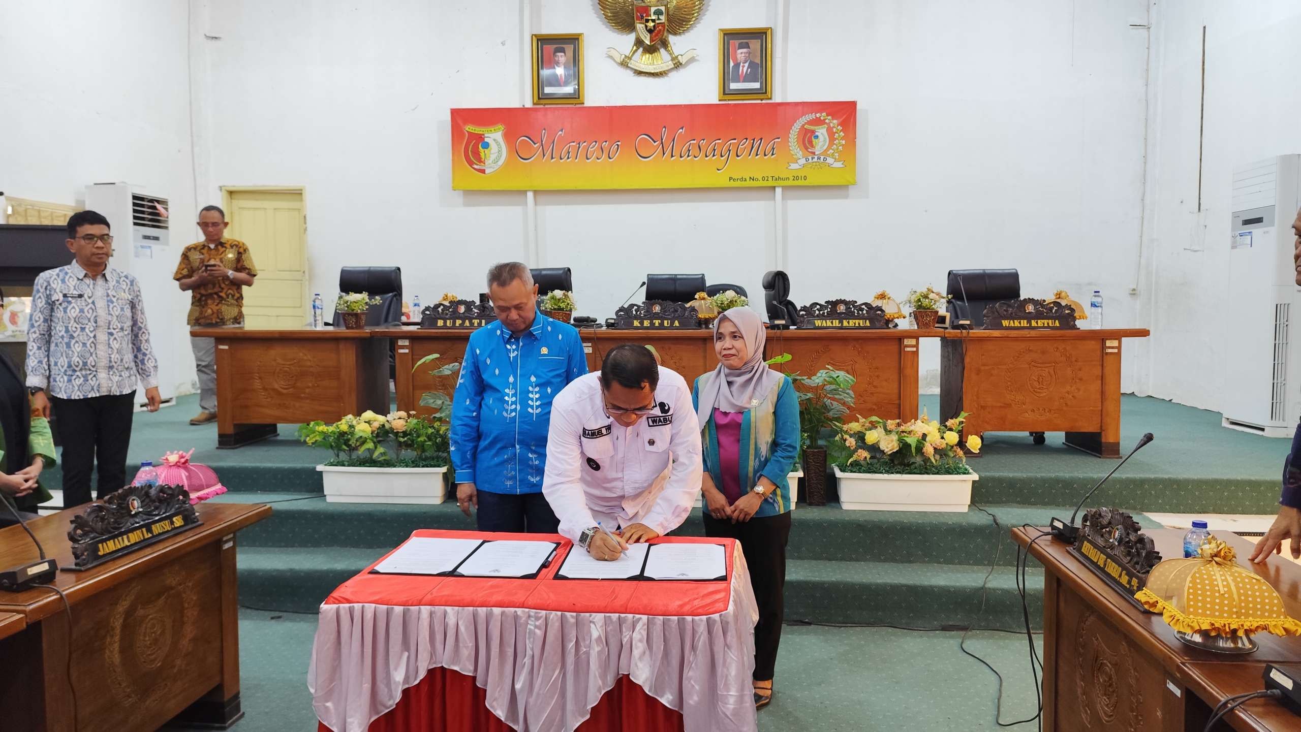 “Sesuai ketentuan Pasal 20 Ayat (6) Peraturan Tata Tertip DPRD Kabupaten Sigi menyatakan bahwa Kebijakan Umum APBD dan Prioritas dan Plafon Anggaran Sementara yang telah mendapatkan persetujuan bersama ditandatangani bersama oleh Kepala Daerah dan Pimpinan DPRD dalam rapat paripurna,” terang Ketua DPRD Rizal Intjenae. (Ardi)