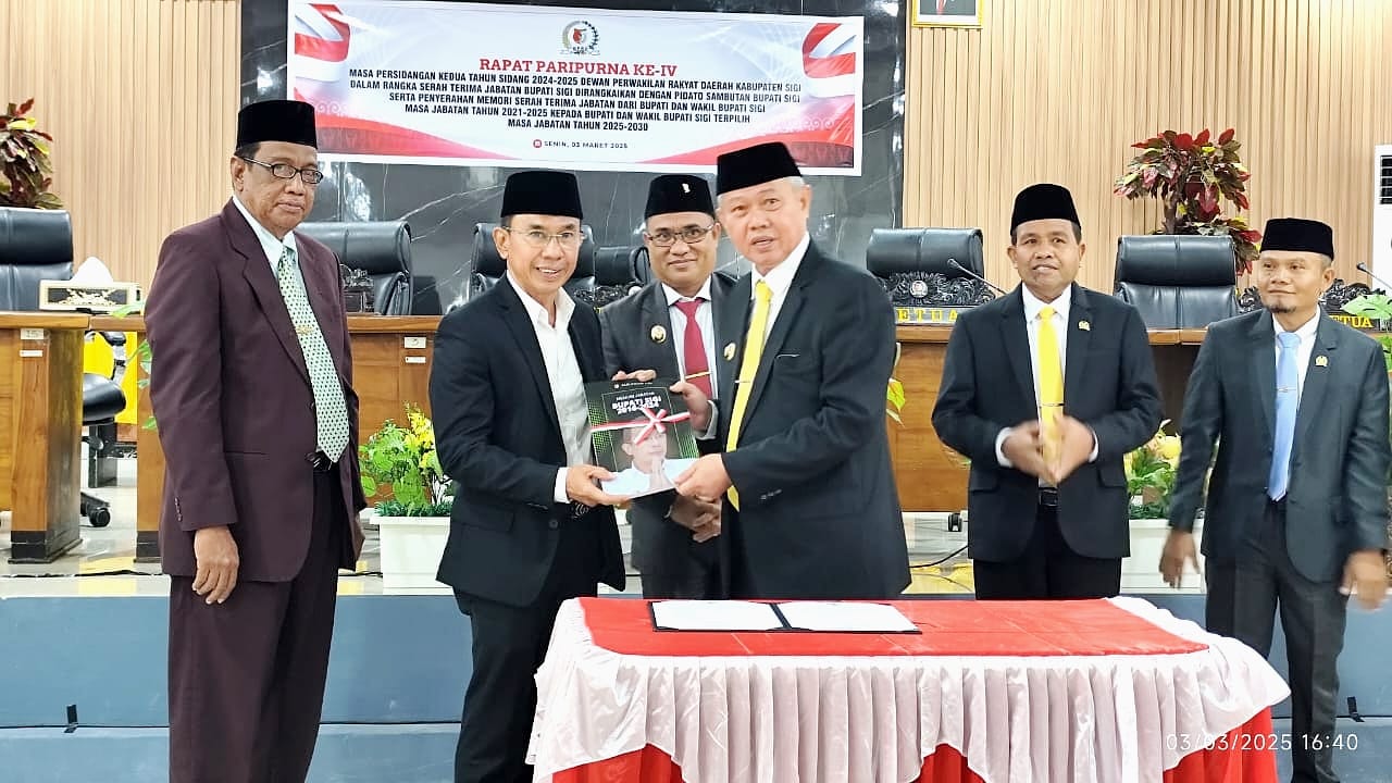 Acara berlangsung di Ruang Rapat Paripurna DPRD Sigi, Jalan Poros Palu-Palolo, Kecamatan Sigi Kota, Sulawesi Tengah, pada Senin (3/3/2025).
