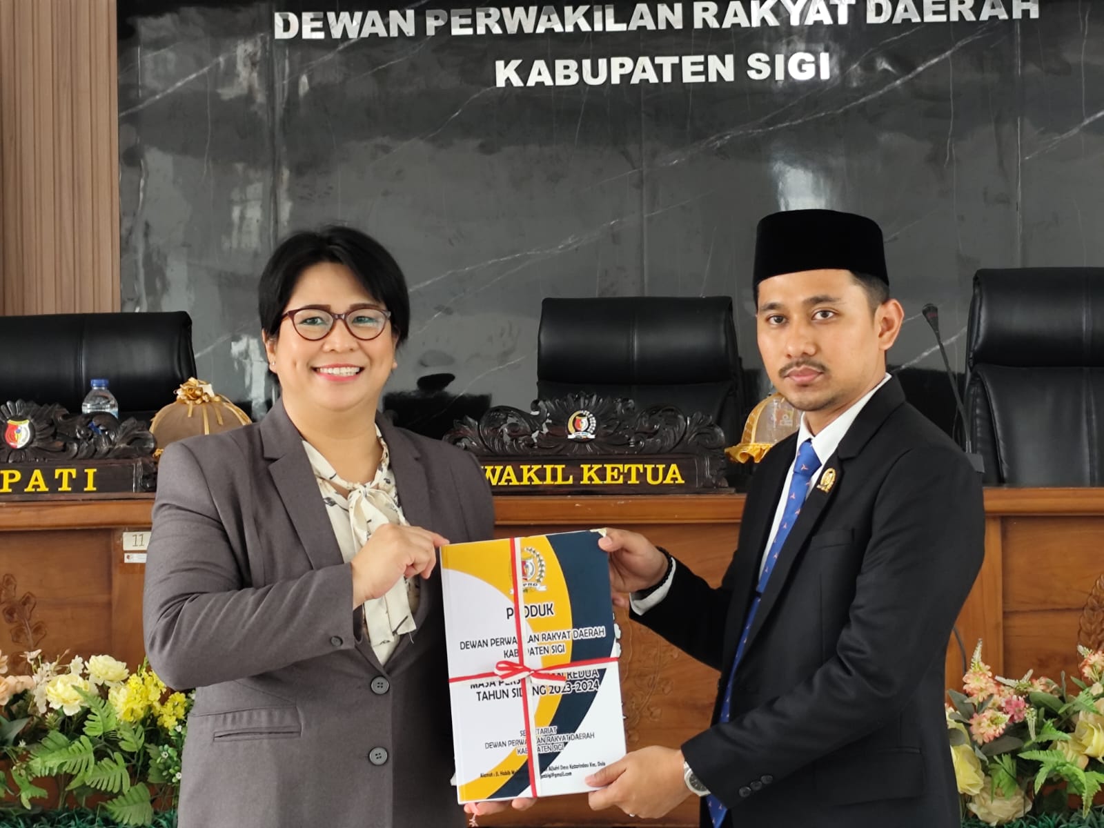 Penyerahan Produk DPRD Kabupaten Sigi Masa Persidangan Kedua Tahun Sidang 2024-2025, dari Pimpinan DPRD kepada Bupati Sigi. (Foto:Ardi)