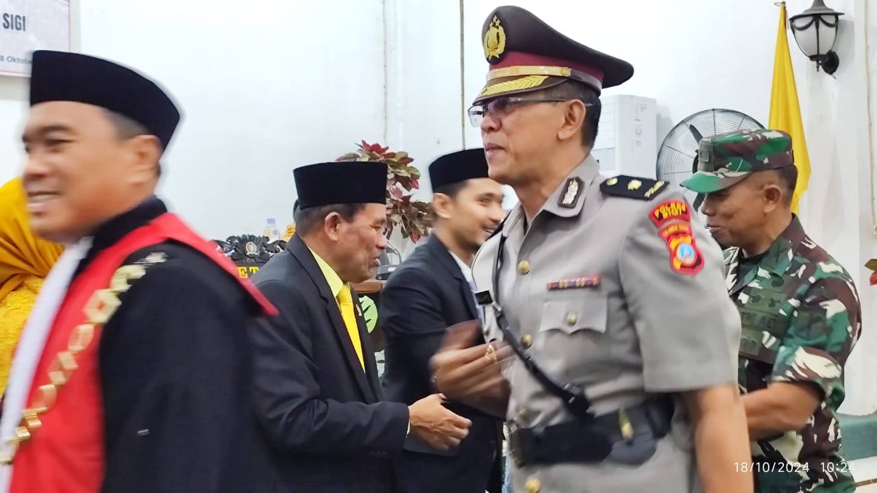 penasulawesi.com ||SIGI, – Wakapolres Sigi Kompol Sulardi, menghadiri pelantikan dua pimpinan defenitif DPRD Kabupaten Sigi, periode 2024-2029, berlangsung di ruang rapat DPRD Sigi, Jumat (18/10/2024).