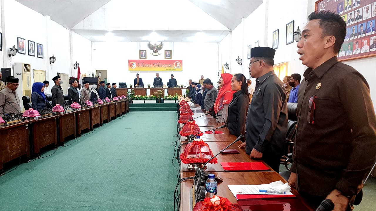 Rapat Paripirna Senin (12/12/22) ini dipimpin Wakil Ketua II DPRD Sigi Imran Latjedi didampingi langsung Ketua DPRD Sigi Moh Rizal Intjenae, dihadiri Staf Ahli Bidang Hukum dan Politik Toni W Ponulele.