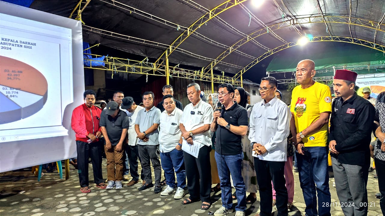 “Hasil rekapan sementara C1 yang disampaikan oleh para relawan dan partai pendukung Rizal-SYP, kita menangkan 11 kecamatan dari 16 kecamatan yang ada di Kabupaten Sigi,” ujar Irwan, saat konfrensi pers di kediaman calon Bupati Sigi Rizal Intjenae, Rabu malam (27/11/24) .