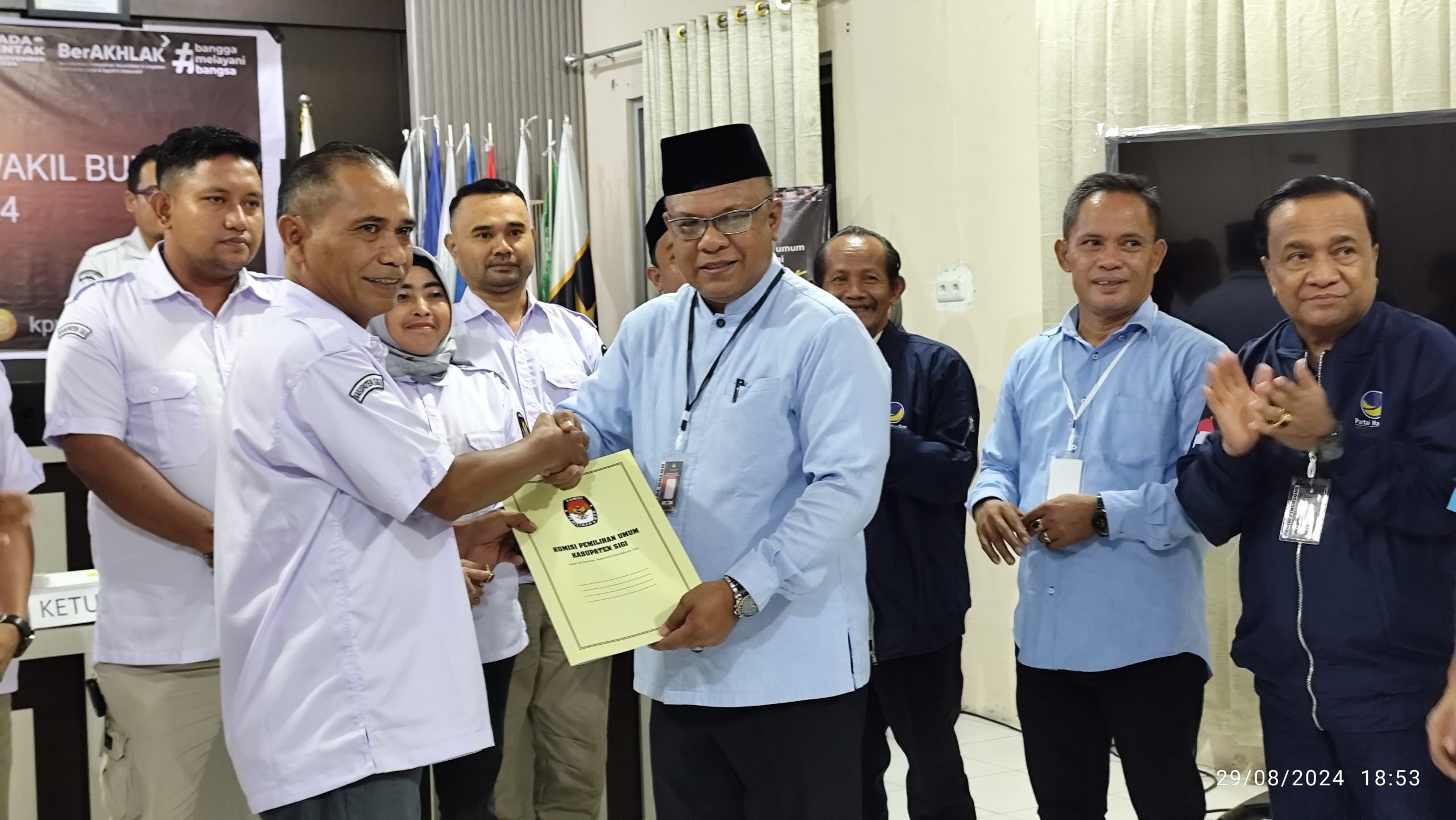 SIGI, – Komisi Pemilihan Umum (KPU) Kabupaten Sigi menyampaikan bahwa berkas pendaftaran pasangan calon bupati dan wakil bupati, Moh. Agus Rahmat Lamakarate dan Samuel Riga, yang dikenal sebagai Alam Siga, telah dinyatakan lengkap. Dengan penetapan ini, Alam Siga dapat melanjutkan ke tahapan berikutnya dalam pemilihan kepala daerah (pilkada) 2024.