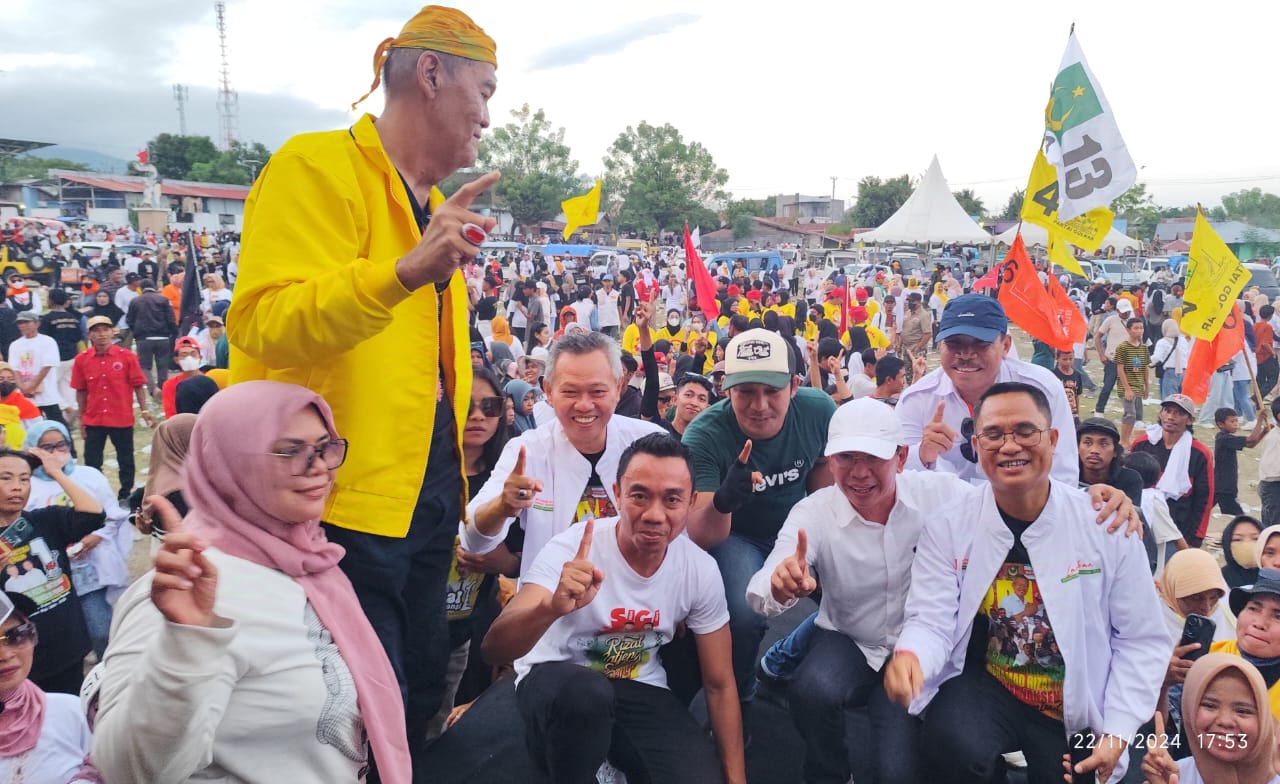 penasulawesi.com ||SIGI, – Kampanye pasangan calon (Paslon) Bupati dan Wakil Bupati Sigi nomor urut 1, Rizal Intjenae dan Samuel Yansen Pongi, berlangsung meriah di Lapangan Sepak Bola Padende, Kecamatan Marawola, Jumat sore (22/11/2024).