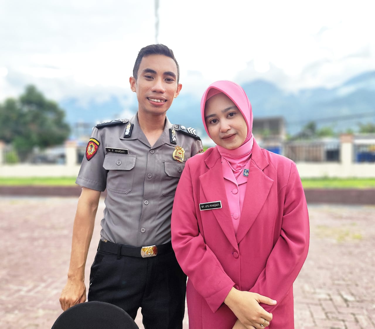 Momen kebersamaan Kadafi bersama istri menjadi simbol dukungan keluarga dalam perjalanan kariernya sebagai anggota Polri. Dengan senyum bahagia, keduanya berfoto bersama, menandai capaian penting yang diraih setelah melewati proses pengabdian dan penilaian kinerja.