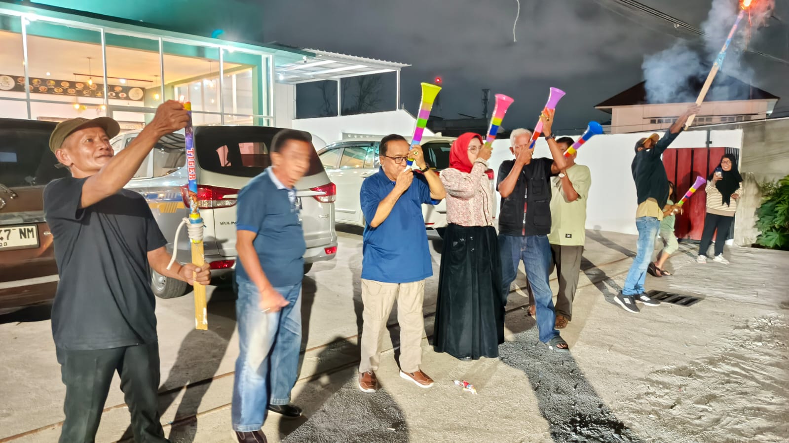 Ketika jarum jam mendekati angka dua belas, suasana berubah. Tiupan terompet mulai terdengar, disusul dentuman petasan yang memecah keheningan malam. Cahaya singkat dari letupan petasan menerangi wajah-wajah yang tersenyum, menandai lahirnya tahun yang baru. Tak ada kemewahan, hanya kegembiraan yang jujur dan rasa syukur yang sederhana.