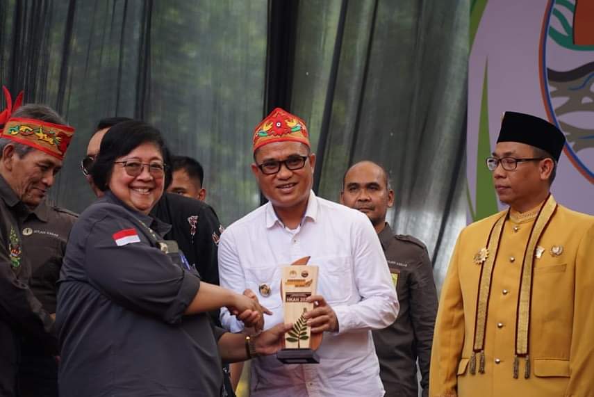 Penghargaan diberikan pada puncak Peringatan Hari Konservasi Alam Nasional (HKAN) Tahun 2023 di Taman Wisata Alam Bukit Tangkiling, Palangkaraya, Kalimantan Tengah, Rabu (8/11/2023), diterima Wakil Bupati Sigi DR Samuel Yansen Pongi, diserahkan langsung oleh Menteri Lingkungan Hidup dan Kehutanan (LHK) Siti Nurbaya.