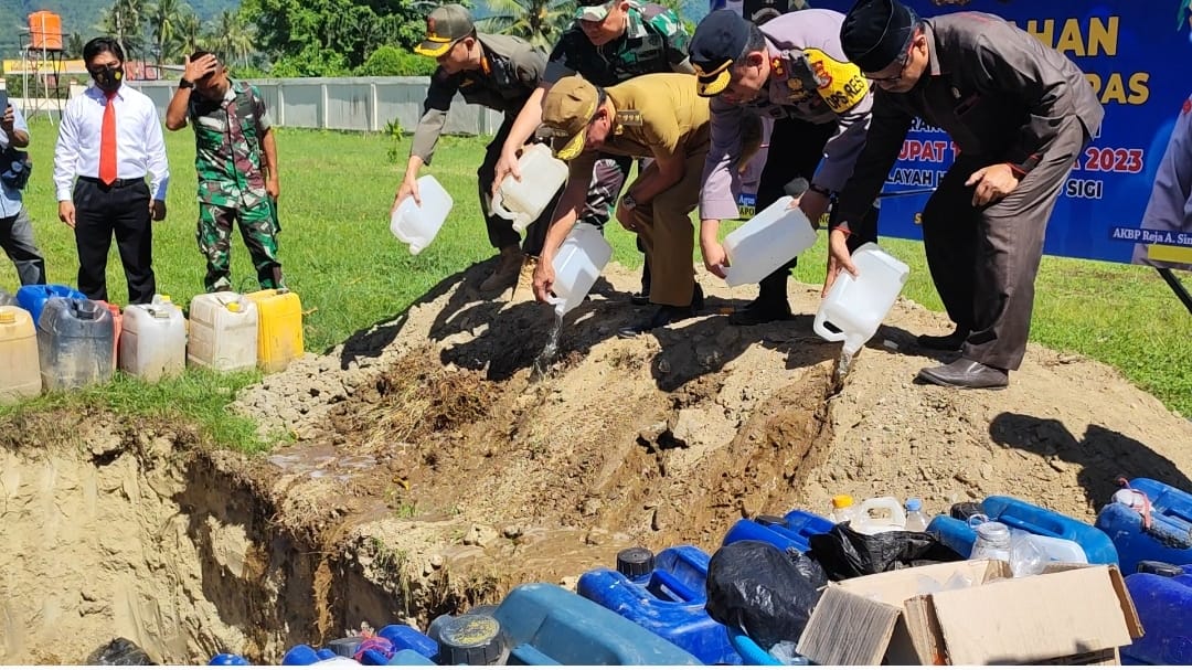 PENASULAWESI.com,– Polres Sigi melakukan pemusnahan seribuan liter minuman keras (miras) yang didapat dari hasil razia selama empat bulan terakhir.