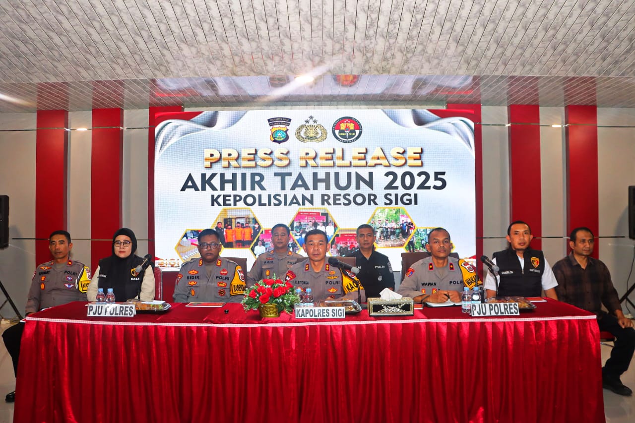 Capaian tersebut disampaikan Kepala Kepolisian Resor Sigi AKBP Kari Amsah Ritonga, S.H., S.I.K., M.H. saat memimpin Press Release Akhir Tahun 2025 Polres Sigi di Aula Sarja Arya Racana Polres Sigi, Selasa (30/12/2025).