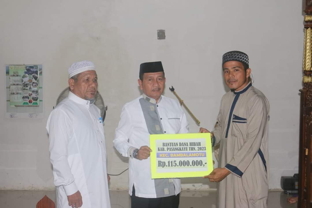 PENASULAWESI.com,- Bupati Pasangkayu H Yaumil Ambo Djiwa menyerahkan bantuan hibah sebesar Rp 115 juta yang diperuntukkan kepada seluruh Masjid yang ada di Kecamatan Bambalamotu.