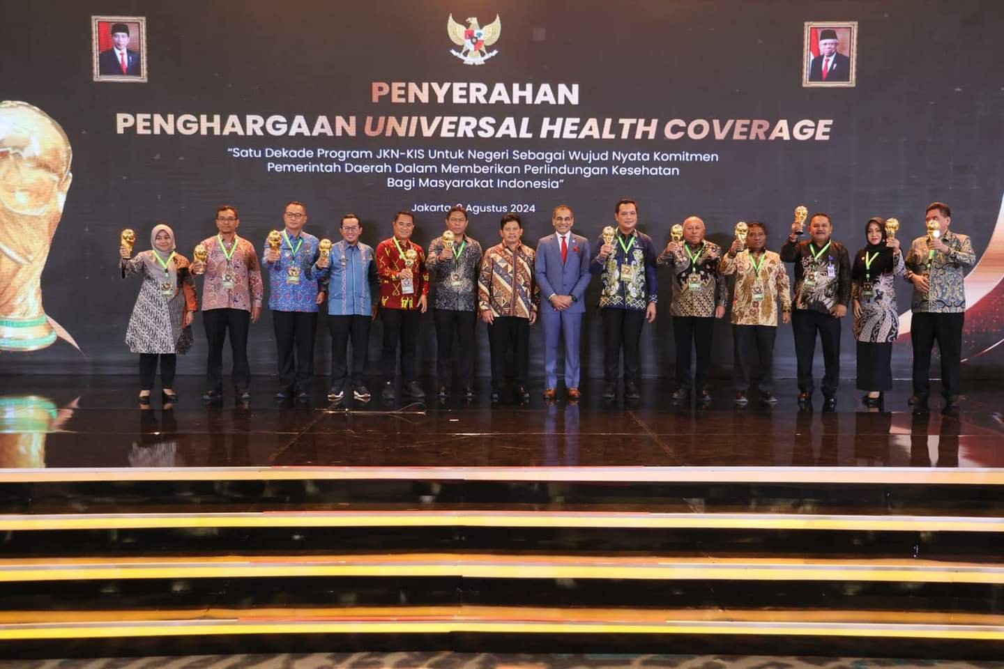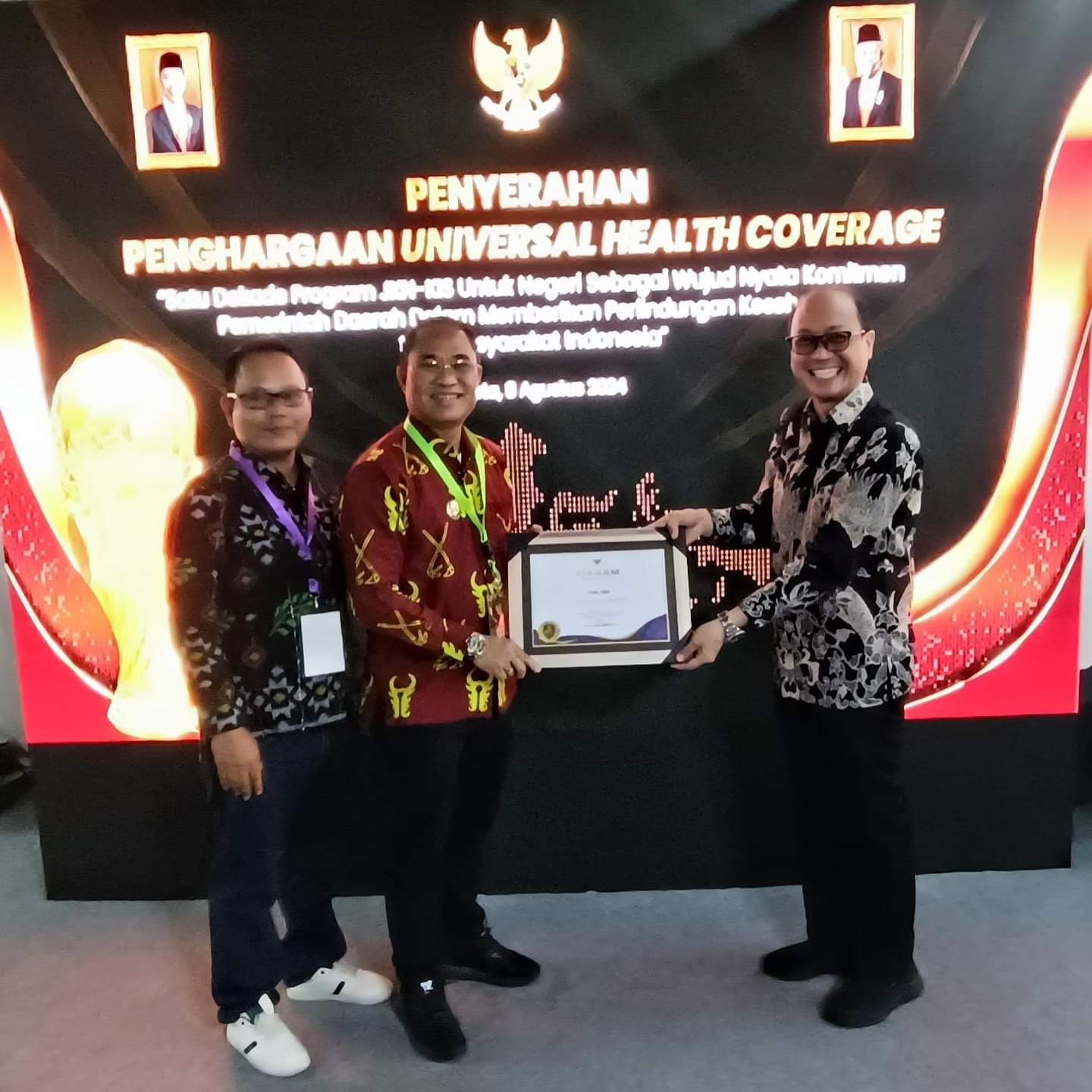 Penghargaan ini diberikan langsung oleh Wakil Presiden Republik Indonesia kepada pemerintah daerah yang berhasil mencapai Universal Health Coverage (UHC), Jakarta 8 Agustus 2024.
