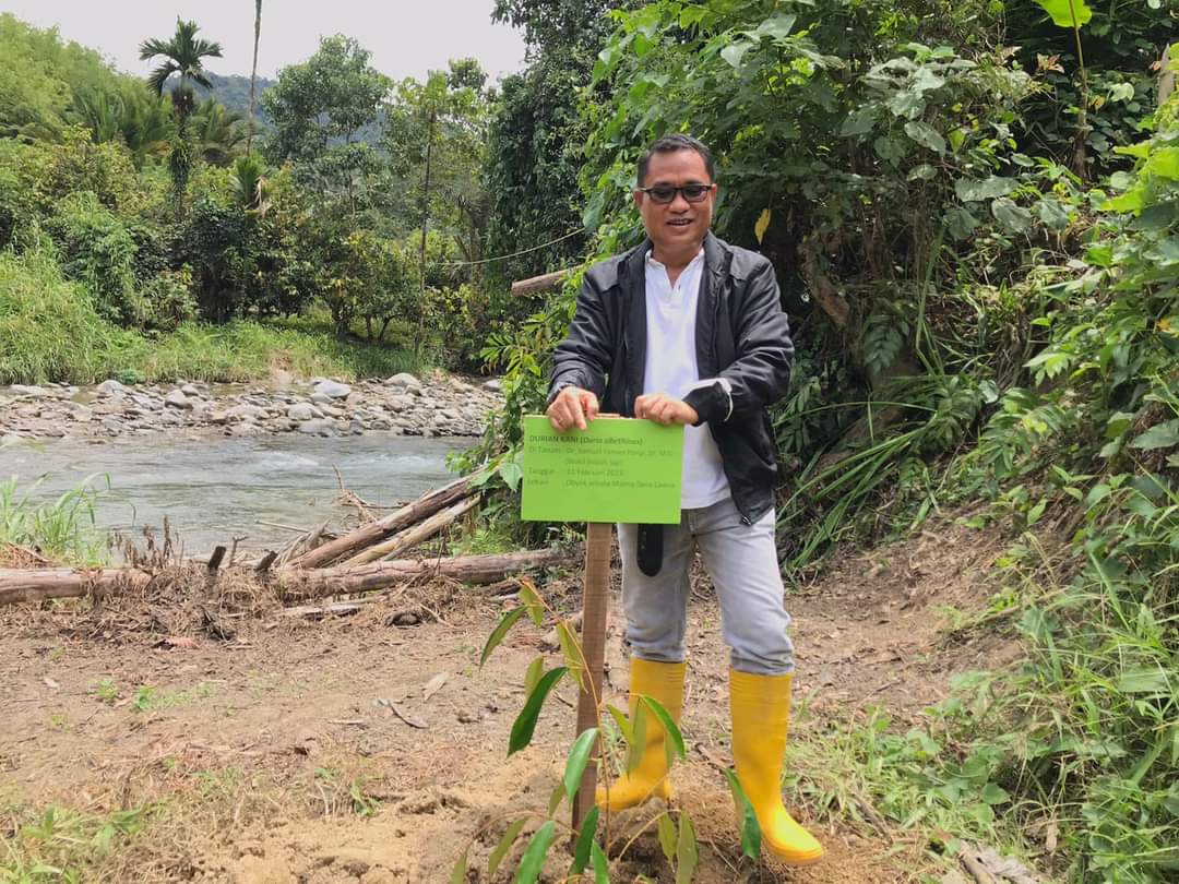 Kegiatan panen padi perdana dan penanaman bambu dilanjutkan dengan penanaman pohon bibit durian yang turut dihadiri Kepala Balai TNLL, Kadis Pariwisata Sigi, Kadis Tanaman Pangan, Holtikultura, dan Perkebunan Sigi, Kadis Lingkungan Hidup.