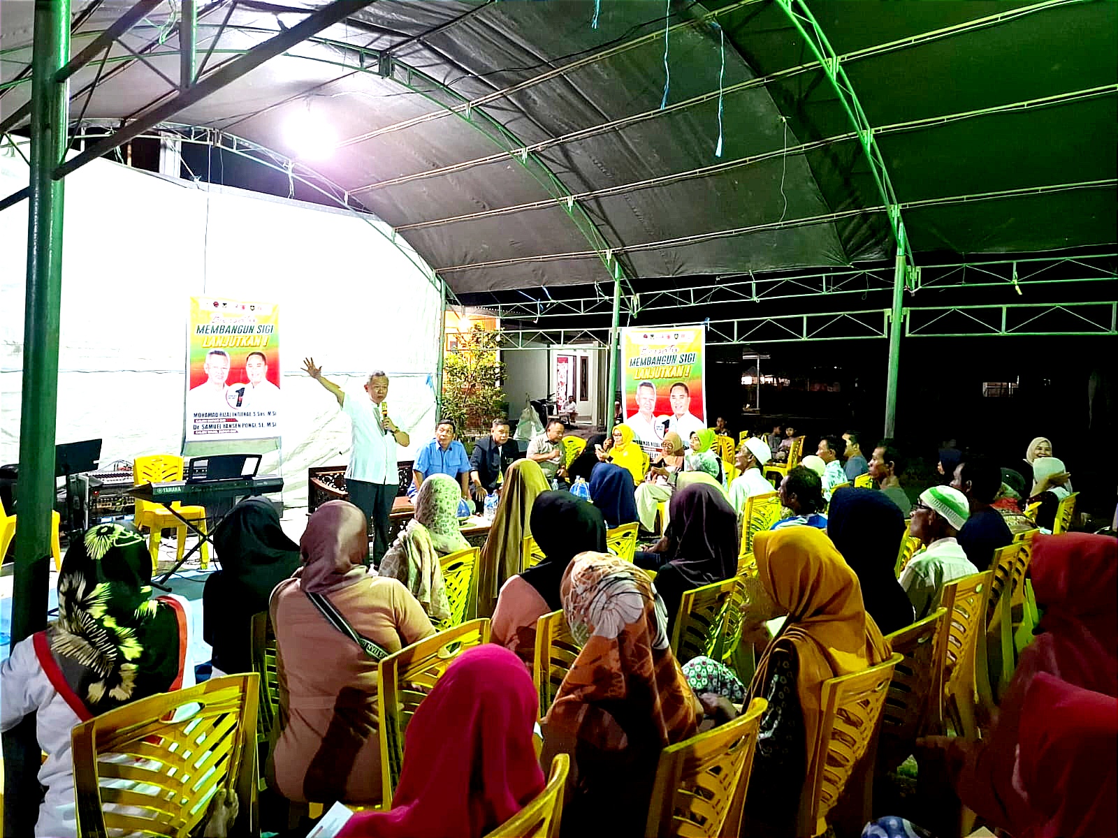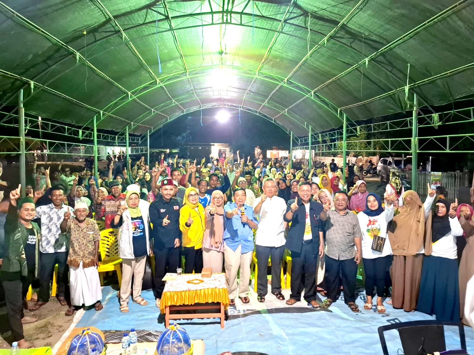 “Satu dicoblos, dua dilipat, tiga masukkan ke peti, empat pulang,” jelasnya sambil disambut gelak tawa penuh keakraban dari masyarakat yang hadir.